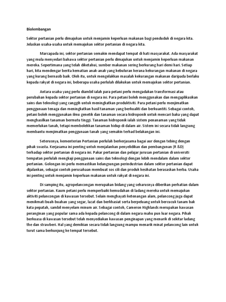 Contoh Karangan Spm Biolembangan